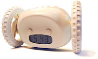 O Clocky é um relógio despertador como outro qualquer - mas, dotado de um par de rodas de borracha, ele literalmente corre pelo quarto, fazendo com que a pessoa tenha que sair da cama para desligá-lo.